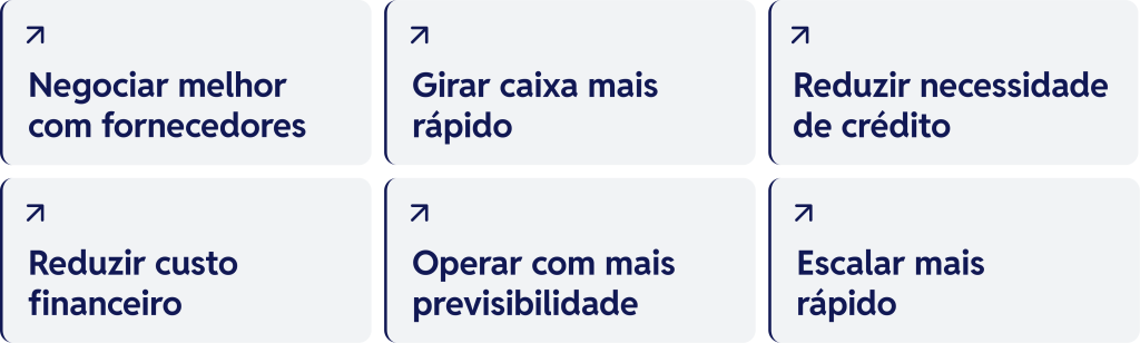 Empresas que operam com liquidação mais rápida carregam menos capital parado, assumem menos risco, giram mais o caixa e conseguem crescer com mais eficiência.