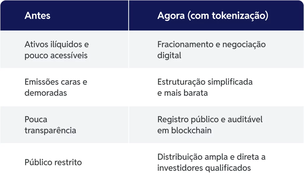 - Acesso fracionado e desintermediado: Investidores ganham acesso a ativos antes restritos; emissores alcançam mais capital, com menos barreiras.